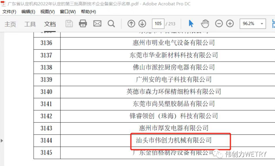 根據(jù)《高新技術(shù)企業(yè)認定管理辦法》和《高新技術(shù)企業(yè)認定管理工作指引》有關(guān)規(guī)定,現(xiàn)將廣東省認定機構(gòu)2022年認定的第三批6378家高新技術(shù)企業(yè)進行備案公示。汕頭市偉創(chuàng)力機械有限公司有限公司名列其中。